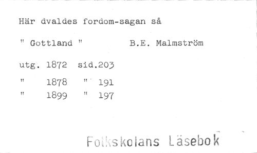 //// Här dvaldes fordom-sagan så //// " Gottland " B.E. Malmström //// utg. 1872 sid.203 //// tt 1878 "- 191 //// 1899 " 197 //// F ,skolans Läsebok ////