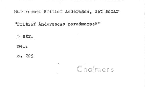 //// Här kommer Pritiof Andersson, det snöar "Pritiof Anderssons paradmarsob9 //// 5 str, inel. //// s. 229 //// C cIrt- er s ////