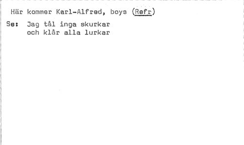 //// Här kommer Karl-Alfred, boys (Refr) //// Ses Jag tål inga skurkar och klår alla lurkar ////