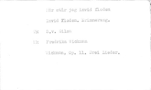 //// gir står jag invid floden Invid Floden. :2;rinnerung. 2.x S.v. Gilsa //// 2redrika Wickman //// -"ickman, Op. 11, Drei Meder. ////