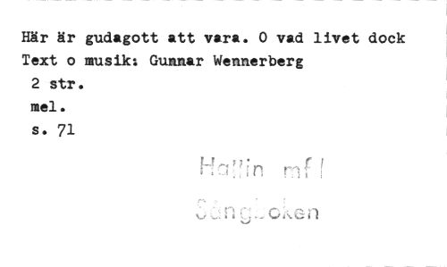 //// Här är gudagott att vara. 0 vad livet dock Text o muslin Gunnar Wennerberg //// 2 str. //// mel. //// s. 71 //// H a f'n rlf( //// 4-/ N-. 0 ;;.9 e fl ////