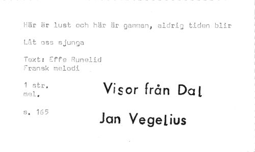 //// Här är lust och här är gamman, aldrig tiden blir Låt oss sjunga //// Text: Effe Runelid Fransk melodi //// 1 str. mel. Visor från Da t //// s. 165 Jan Vegelius ////