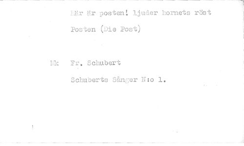 //// Lär dr posten ljuder hornets röst Posten (nie Post) //// Pk Fr. Schubert //// Schuberts Sånger N:o 1. ////