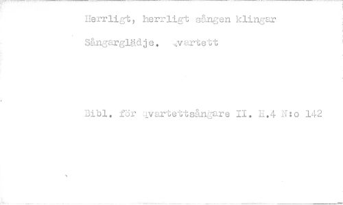 //// lierrligt, herrligt sången klingar Sångarglädje. vartett //// Bibi. för Qvartettsångare II. E.4 To 142 ////