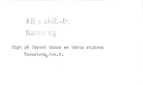 //// KB:s //// Högt på fästet tänds en ödets stjärna FernströmrJoh.P. ////
