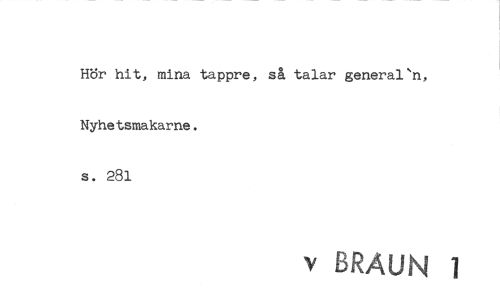 //// Hör hit, mina tappre, så talar generarn, Nyhetsmakarne. //// s. 281 //// v BRAUN 1 ////