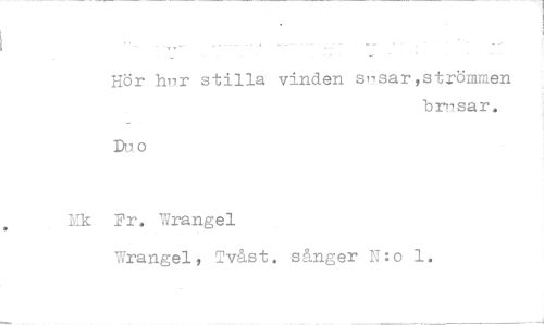 //// Hör hur stilla vinden s-sar,strömmen //// brusar. //// Duo //// Mk Fr. Wrangel //// Wrangel, Tvåst. sånger 11:o 1. ////