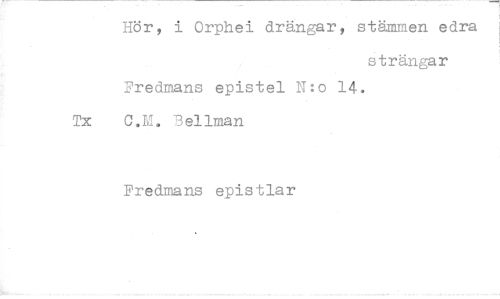 //// Hör, i Orphei drängar, stämmen edra //// strängar //// Fredmans epistel N:o 14, Tx C.M. Bellman //// Fredmans epistlar ////