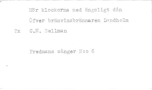 //// Hör klockorna med ängsligt dån Öfver bränvinsbrännaren ndholm Tx C.M. Bellman //// Fredmans sånger IT:o 6 ////