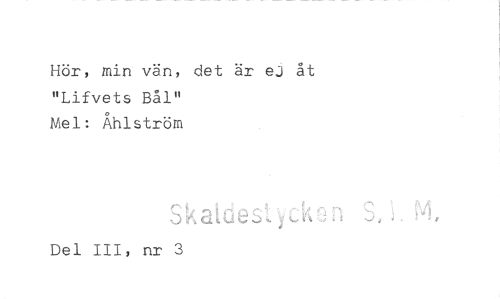 //// Hör, min vän, det är ej åt "Lifvets Bål" //// Mel: Åhlström //// , //// Del III, nr 3 ////