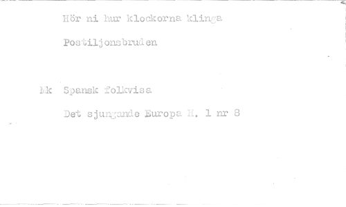//// Hör ni hur klockorna klina Postiljonsbruden //// Lk Spanskfolkvisa //// Det sjuncande uropa H. 1 nr 8 ////