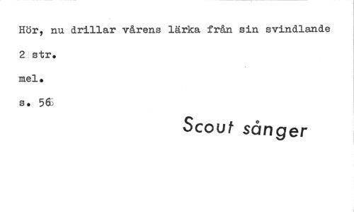 //// Hör, nu drillar vårens lärka från sin svindlande //// a str. mel. //// so 56 //// Scout sånger ////