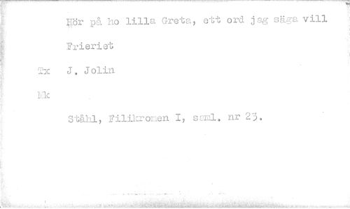 //// 1ör på ho lilla Greta, ett ord jag saga vill //// Frieriet Tx J. John hk //// Ståhl, Filikronen 1, enl. nr 23. ////