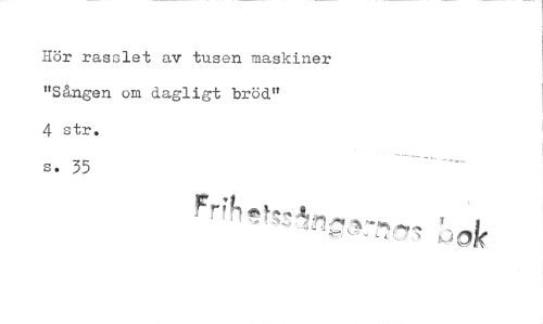 //// Hör rasslet av tusen maskiner "Sången om dagligt bröd" //// 4 str, //// s. 35 ////