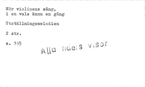 //// Hör violinens sång, //// i en vals ännu en gång Utställningsmelodien //// 2 str. //// s. 185 //// Sjr //// ei ////