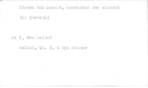 //// Hösten har kommit, soturens ras vissnat Vid Hösteticl //// Vilc P. von Helaid //// Herand, Op. 6. 4. nya sånger- ////