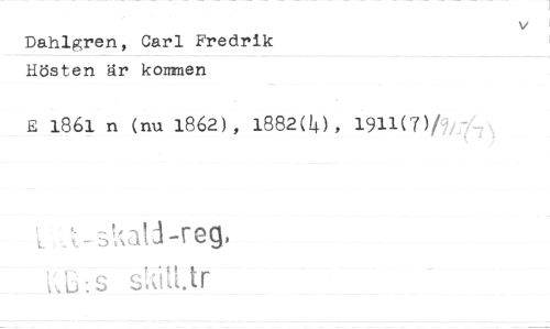 //// Dahlgren, Carl Fredrik Hösten är kommen //// E 1861 n (nu 1862), 1882(4), 1911(7) //// /:„2113-reg, //// sUitt.tr ////