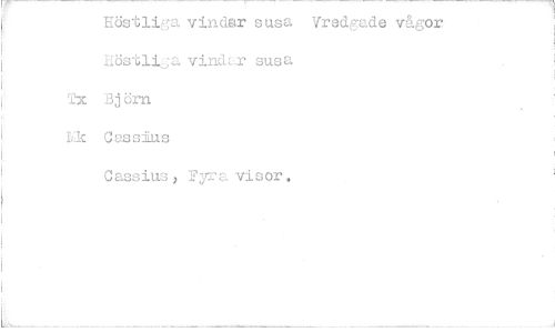 //// Höstliga vindar susa Vredgade vågor liöstaija vindar susa //// 17. Björn //// Lic Cass:Lus //// Cassius, Fyra visor. ////