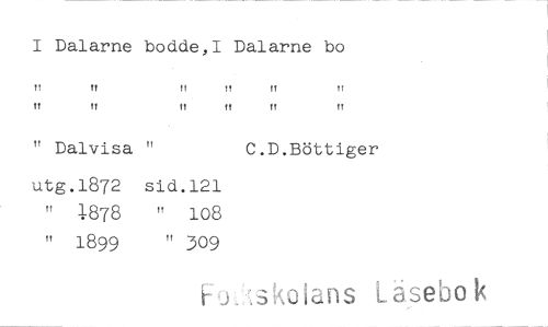 //// Dalarne bodde,I Dalarne bo //// I t It It tt tt //// tt tt It It tt It //// " Dalvisa " C.D.Böttiger //// utg.1872 sid.121 //// " 1878 108 //// " 1899 tt 309 //// .; ,skolans Låsebok ////