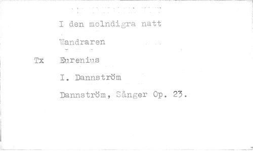 //// I den moln:digra natt Wandraren //// Tx Eurenins //// I. Dannström //// Dannström, 'sånger Op. 23. ////