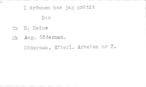 //// I drömmen har jag gråtit D:o //// Tx H. Heine //// Mk Aug Söderman. //// Söderman, Efterl. Arbeten nr 2. ////