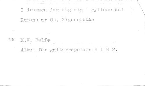 //// I drömmen jag sdg mig i gyllene sal Romans ur Op. Zigenerskan //// Pkk M.W. Balfe //// Album för guitarrspelare H I H 2. ////