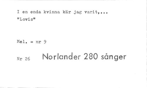 //// I en enda kvinna kär jag varit,... novis" //// Mel. = nr 9 //// Nr 26 Norlander 280 sånger ////