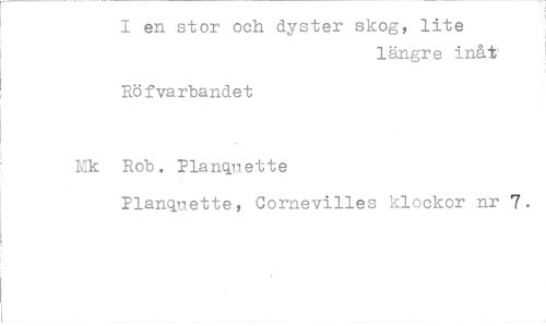 //// I en stor och dyster skog, lite //// längre inåt //// Röfvarbandet //// Mk Rob. Planquette //// Planquette, Cornevilles klockor nr 7. ////