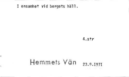 //// I ensamhet vid bergets häll. //// 4.str //// Hemmets Vän 23.0.1971 ////