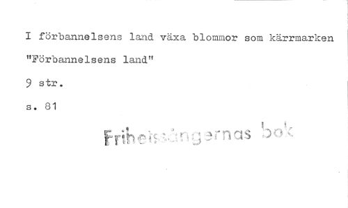 //// I förbannelsens land växa blommor som kärrmarken "Förbannelsens land" //// 9 str. //// s. 81 //// Ar as ////