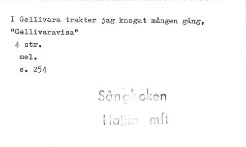//// I Gellivara trakter jag knogat mången gång, "Gellivaravisa" //// 4 str. //// me 1. //// s. 254 //// Såne //// rn f ////