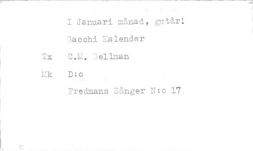 //// I Januari månad, gutår: Bacchi Kalender //// Tx C.M. Uellman //// LIk D:o //// Fredmans Sånger N:o 17 ////
