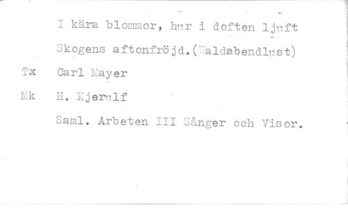 //// I kära blommor, hnr i doften ljnft //// Skogens aftonfröjd.Ualdabendlnst) Tx Carl Mayer //// 1,Ac H. Kjerilf //// Saml. Arbeten III iånger och Visor. ////