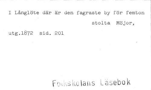 //// I Långlöte där är den fagraste by för femton //// stolta Möjor, //// utg.1872 sid. 201 //// f SkL allS Läsebok ////