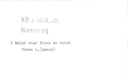//// X:s skitt.-tr, //// Namnreg. //// I Malmö stad finns en butik Nisse L.(pseud) ////