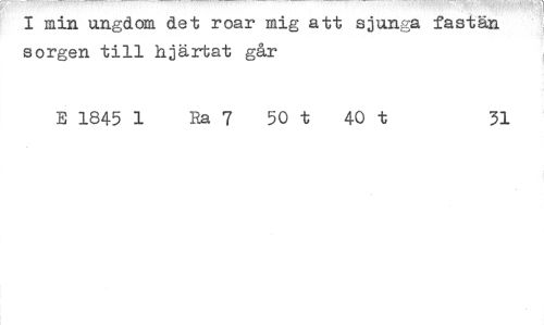 //// I min ungdom det roar mig att sjunga fastän sorgen till hjärtat går //// E 1845 1 Ra 7 50t 40 t 31 ////