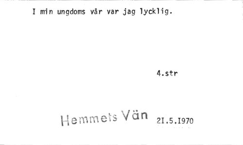 //// I min ungdoms vår var jag lycklig. //// 4.str //// 1-tenirkl&I.3 Vän 21.5.1970 ////