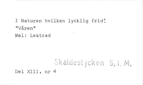 //// I Naturen hvilken lycklig frid: "Våren" //// Mel: Lestrad //// Skatdestycken S, L M. //// Del XIII, nr 4 ////