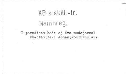 //// KB: s stritt. -tr. //// Namne eg. //// I paradiset hade ej Eva modejornal Ekeblad,Karl Johan, kötthandlare ////