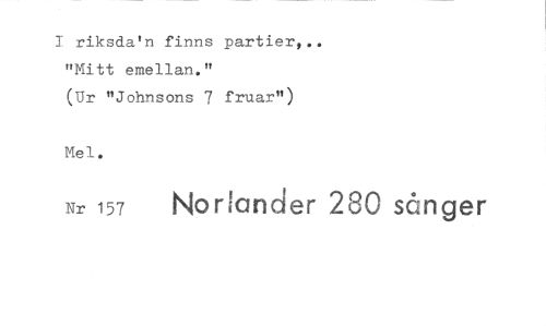 //// 1 riksda'n finns partier,.. "Mitt emellan." //// (Ur "Johnsons 7 fruar") //// Mel. //// Nr 157 Norlander 280 sånger ////