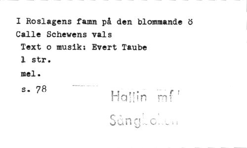 //// I Roslagens famn på den blommande ö Calle Schewens vals //// Text o musik: Evert Taube //// 1 str. mel. //// s. 78 //// It ////
