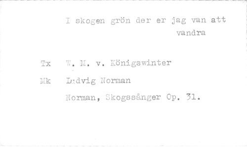//// I skogen grön der er jag van att //// vandra //// Tx . v. Königswinter //// Mk Ludvig Norman //// Norman, Skogssånger Op. 31. ////