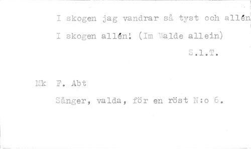 //// I skogen jag vandrar så tyst och allén I skogen allån: (Im 7ialde allein) //// S.1.T. //// . Ab t //// Sånger, valda, för en röst N:0 6. ////
