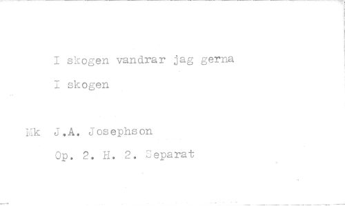 //// I skogen vandrar jag gerna I skogen //// iik J.A. Josephson //// Op. 2. H. 2. Separat ////