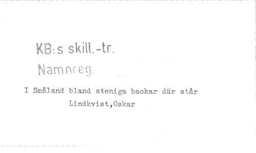 //// KB:s //// Namnseg. //// I Småland bland steniga backar där står Lindkvist, Oskar ////