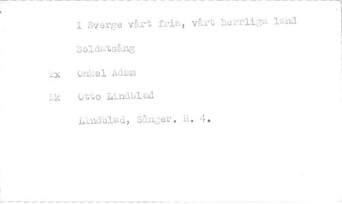 //// I Sverge vårt fria, vårt herrliga land Soldatsång //// Onkel Adam //// Ik Otto Lindblad //// Lindblad, Sånger. H. 4. ////