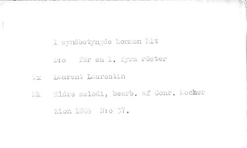 //// 1 syndbetyncde kommen hit för en 1, fyra röster lx Laurent Laurentin //// Lk äldre melodi, bearb. af Uonr. pion 1869 Nto 37. ////