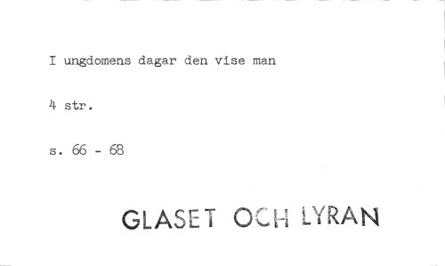 //// I ungdomens dagar den vise man 4 str. //// s. 66 - 68 //// GLASET OCH LYRAN ////
