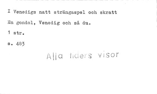 //// I Venedigs natt strängaspel och skratt En gondol, Venedig och så du. //// 1 str. //// 8. 463 //// Alia t cieLs visor ////