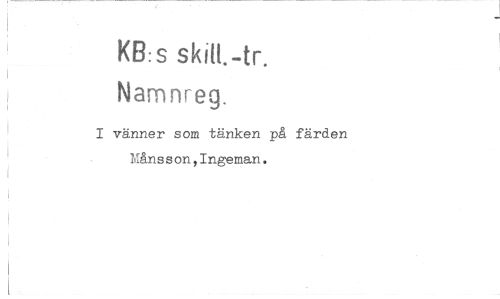 //// KB:s //// Namnreg. //// I vänner som tänken på färden Månsson,Ingeman. ////